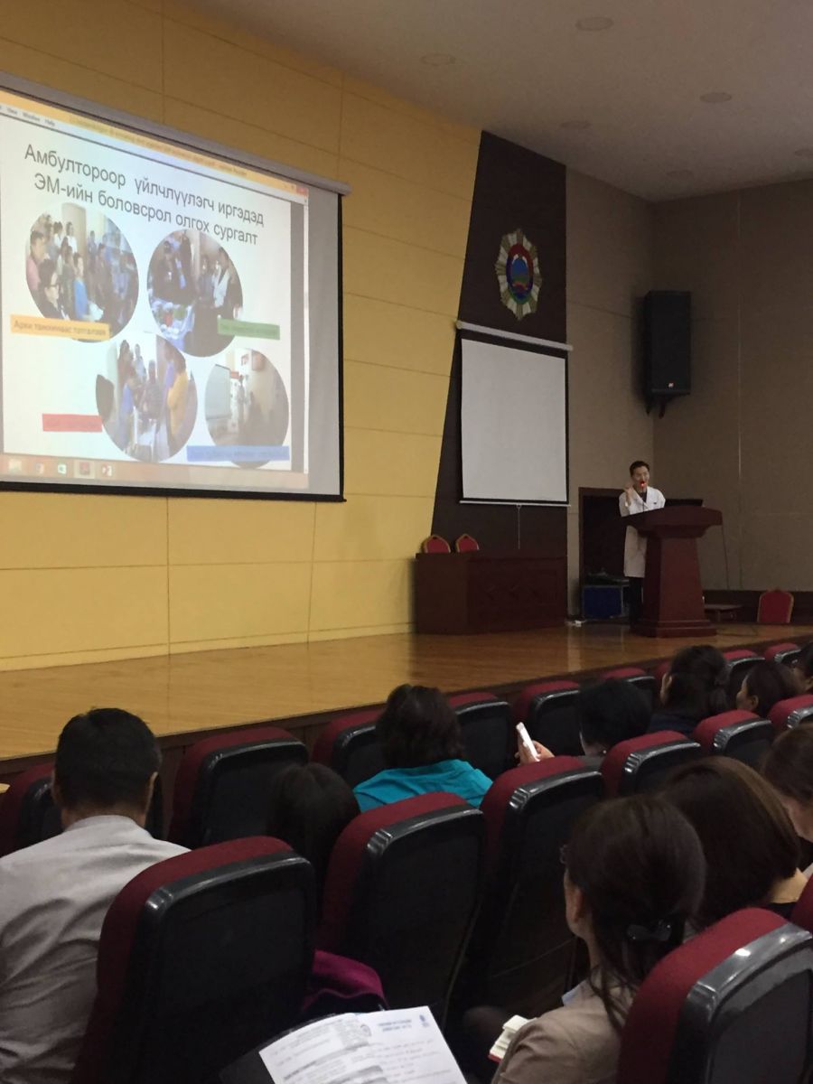Энэхүү сургалтыг ЭМЯ, ЭМХТ-ийн дэмжлэгтэйгээр Сингапур улсад “Нийгмийн эрүүл мэндийн сургалт”-нд хамрагдсан удирдах ажилтан, эмч мэргэжилтэн болон нийгмийн эрүүл мэндийн сургалтын баг болон УГТЭ, ГССҮТ, НЭМҮТ, СЭМҮТ, ХӨСҮТ зэрэг эрүүл мэндийн байгууллагууд хамтран 2017 оны 9 дүгээр сарын 12-15-ны өдрүүдэд 50 гаруй эмч, нийгмийн эрүүл мэндийн ажилтнуудыг хамруулан амжилттай зохион байгуулсан.