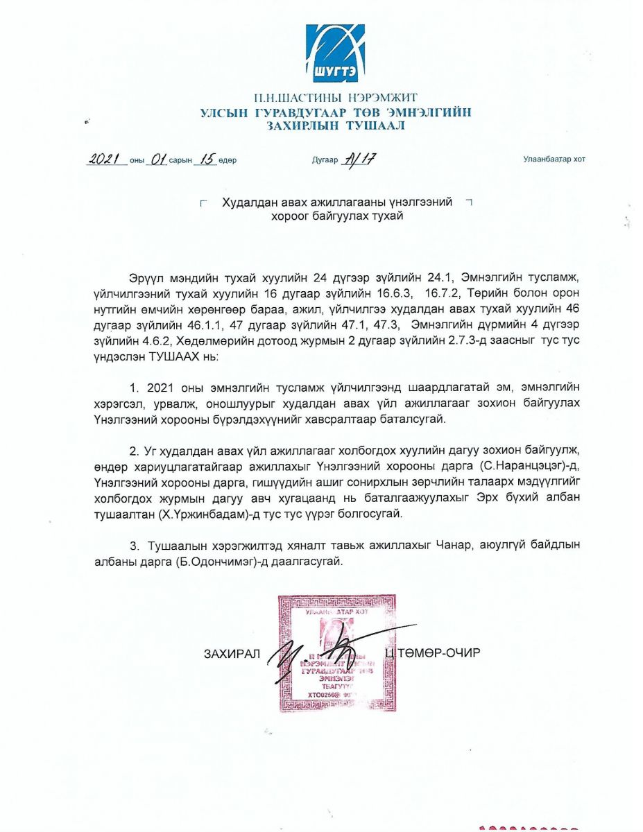 А-17 Худалдан авах ажиллагааны үнэлгээний хороог байгуулах тухай-1