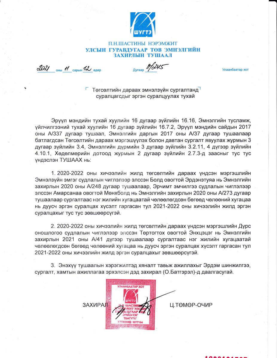 А245 Төгсөлтийн дараах эмнэлзүйн сургалтанд суралцагсдыг эргэн суралцуулах тухай
