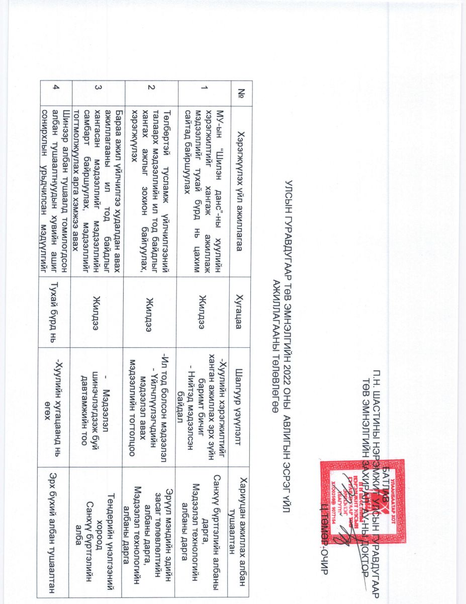 2022 ОНЫ АВЛИГЫН ЭСРЭГ ҮЙЛ АЖИЛЛАГААНЫ ТӨЛӨВЛӨГӨӨ